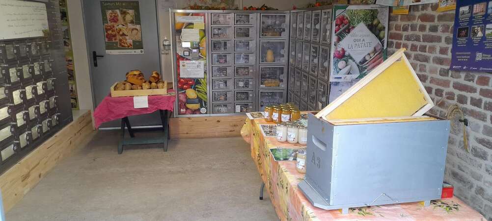 Distributeur automatique à la ferme, ouvert 7 jours sur 7, de 7h à 20h.